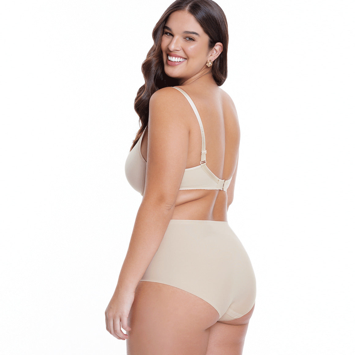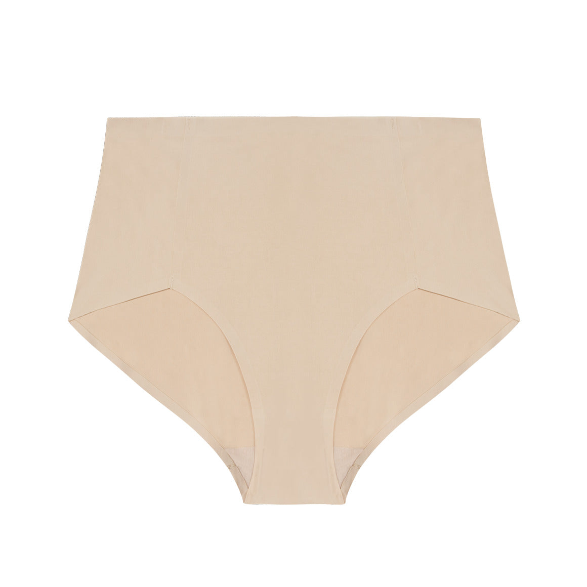 Panty con talle alto y cobertura completa. elaborado de microfibra interlock sin costuras en las orillas para un efecto invisible. puente inferior de algodón.