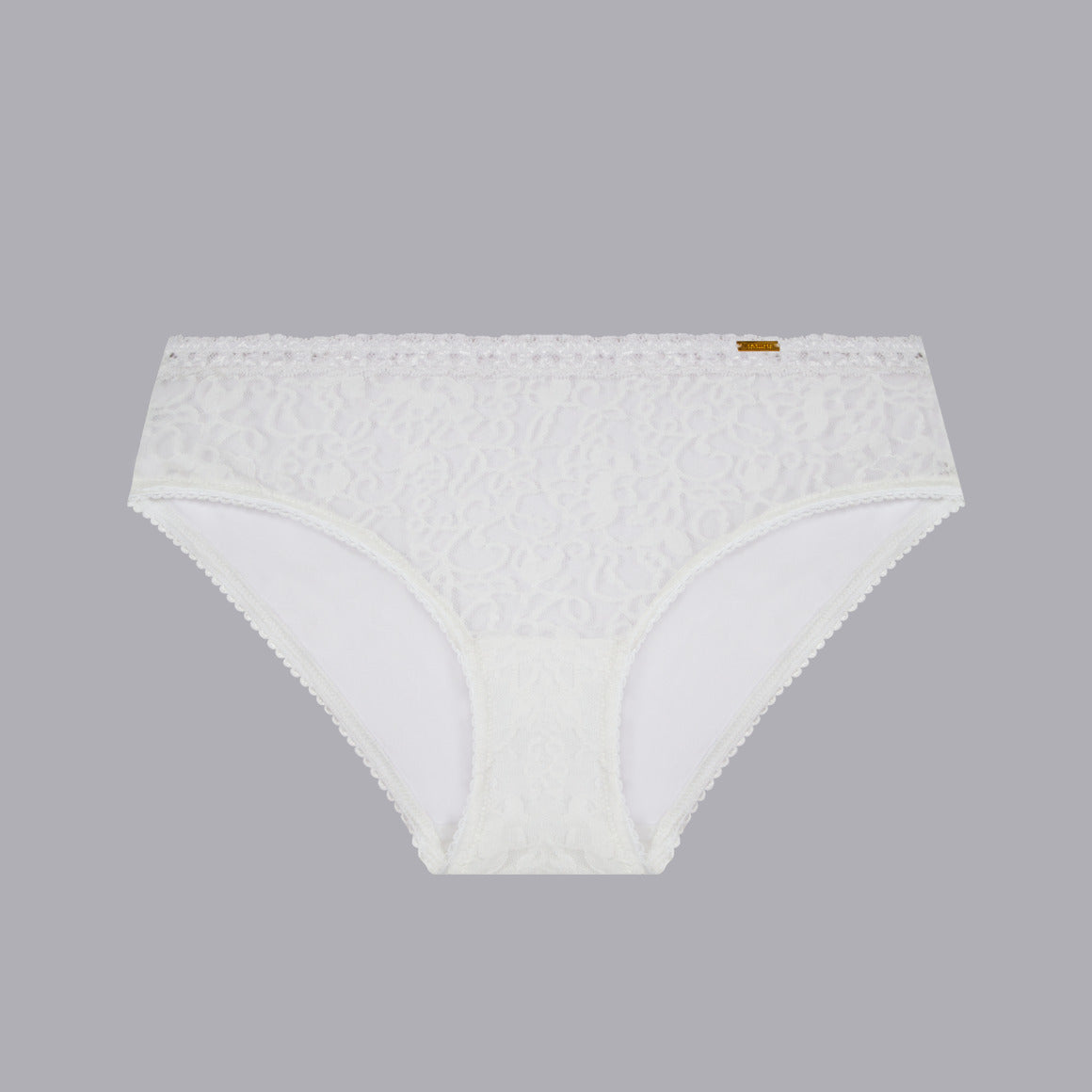 Panty con talle medio y cobertura completa. elaborado de microfibra en la parte posterior, encaje en la frontal y cintura, elástico decorado en piernas para un mejor ajuste. puente inferior de algodón.
