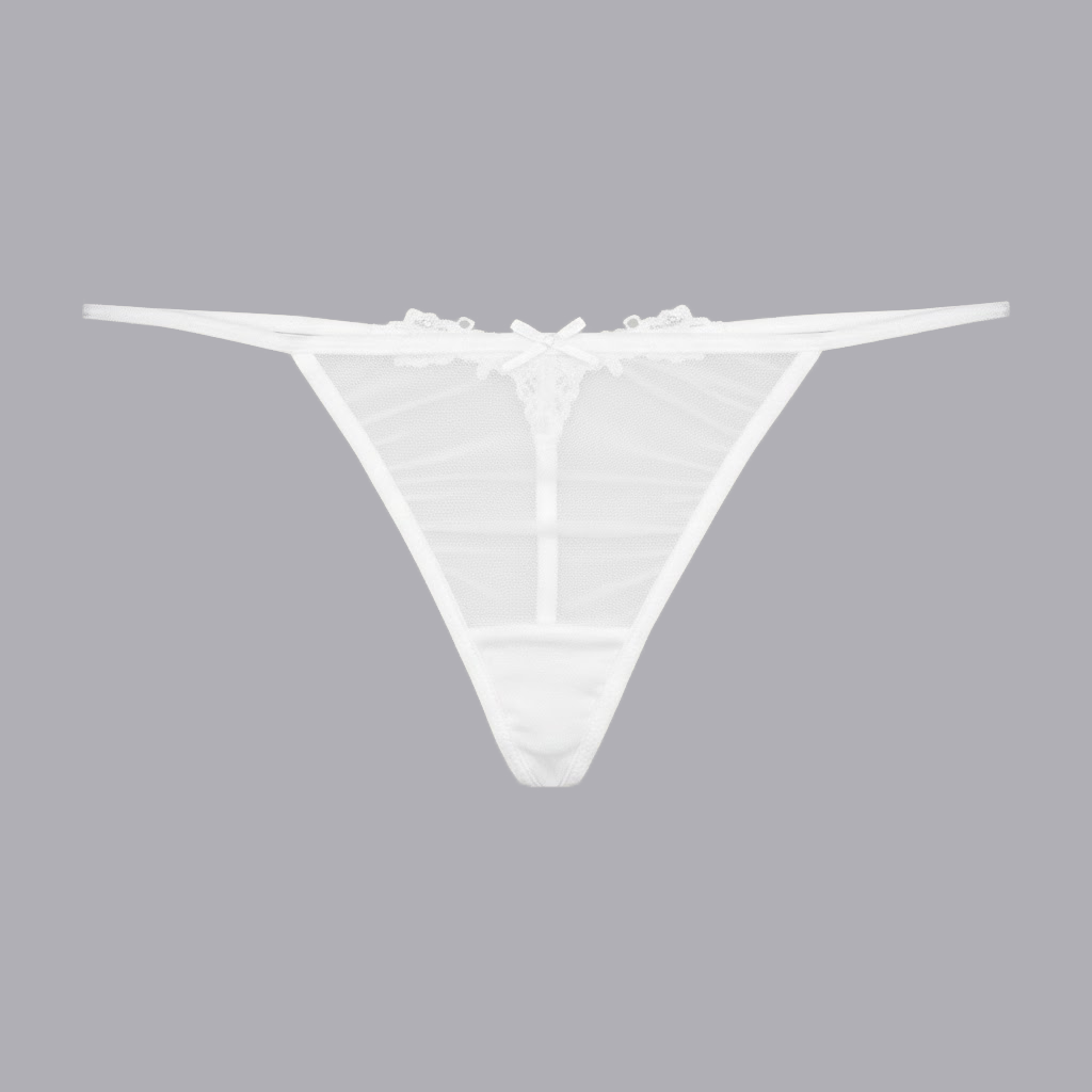 Hilo de talle bajo. elaborado de tul y elástico extrasuave en el contorno, con detalle de encaje floral en la parte posterior. puente inferior de algodón para mayor frescura.