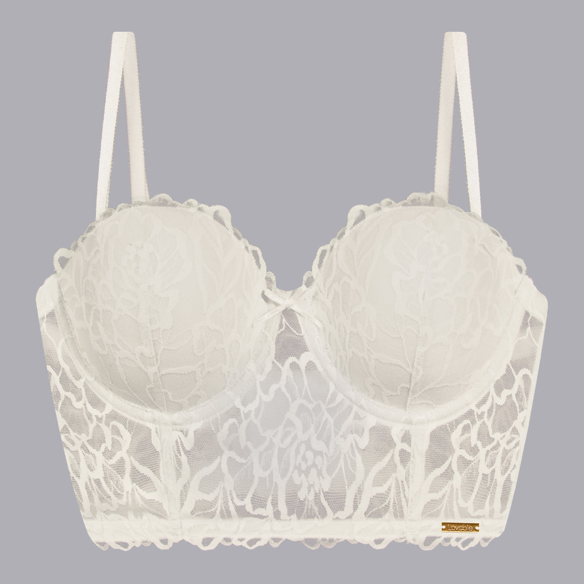 Bustier con copas prehormadas, sin realce (sin push up) y aros que ofrecen mayor soporte. elaborado de encaje con refuerzo de tricot en el frente que aporta mayor firmeza. cuenta con banda media con elástico en las orillas que se adapta al cuerpo cómodamente, varillas laterales y frontales que estilizan tu figura. broche de tres ganchos con cuatro niveles de ajuste. ademés, los tirantes decorados son regulables y removibles, permitiendo usarlo tambión como strapless segón tu look.