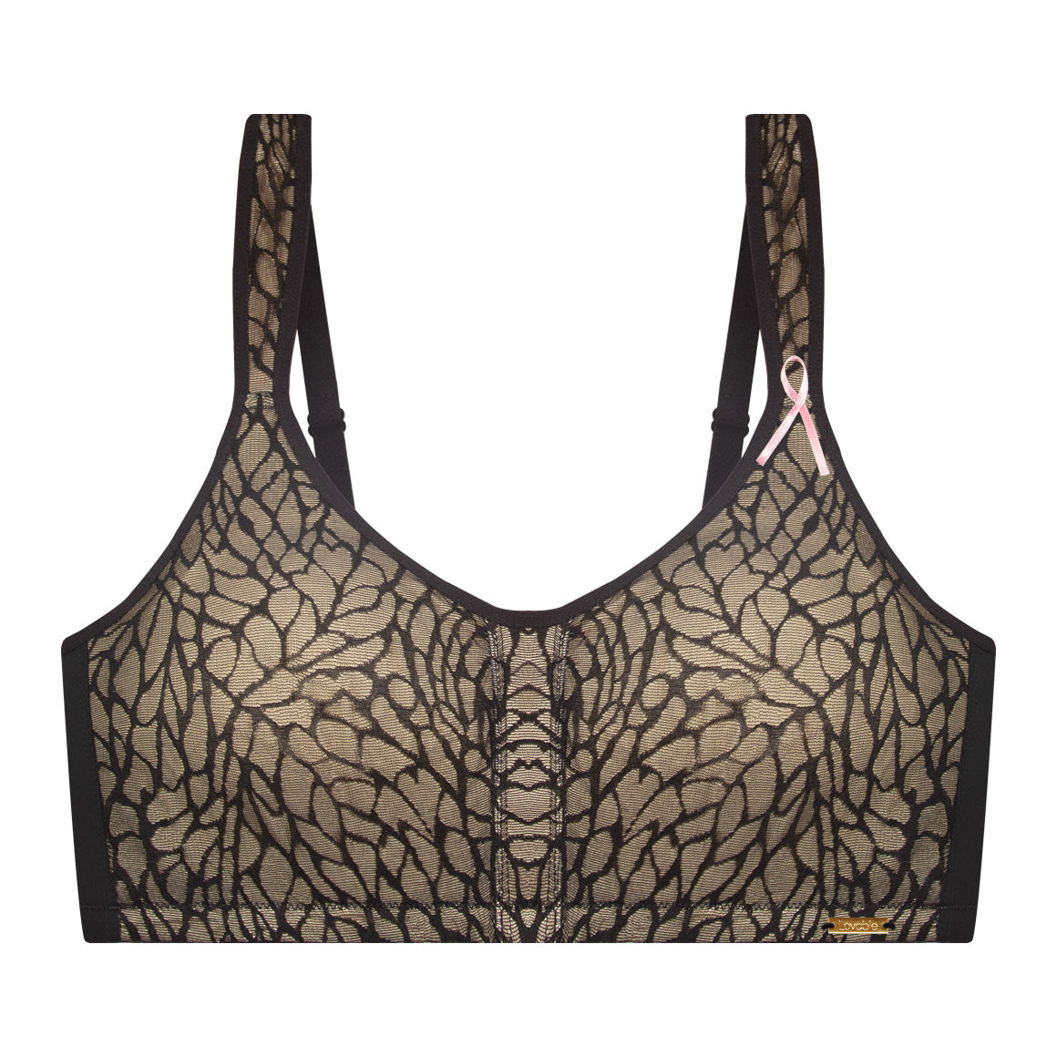 Brasier sin aros, copas de encaje con forro interno de poliéster y contornos inferiores de esponja suave. banda media elaborada de spandex y elastico en las orillas para un mejor ajuste. broche de dos ganchos y cuatro niveles de ajuste. tirantes acolchados y regulables. cuenta con una abertura a los lados de la banda interna para introducir prétesis de post-mastectomña en las copas. *prétesis no incluidas.