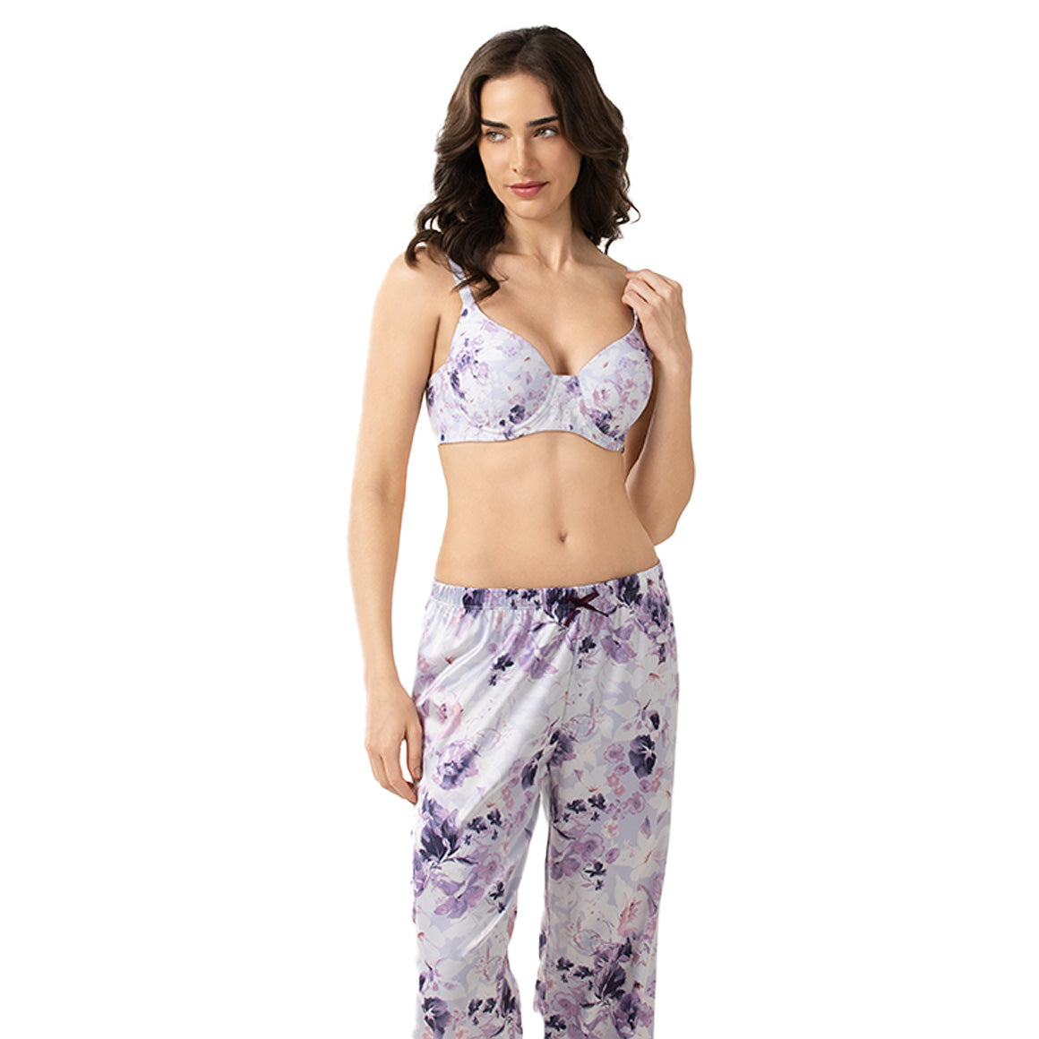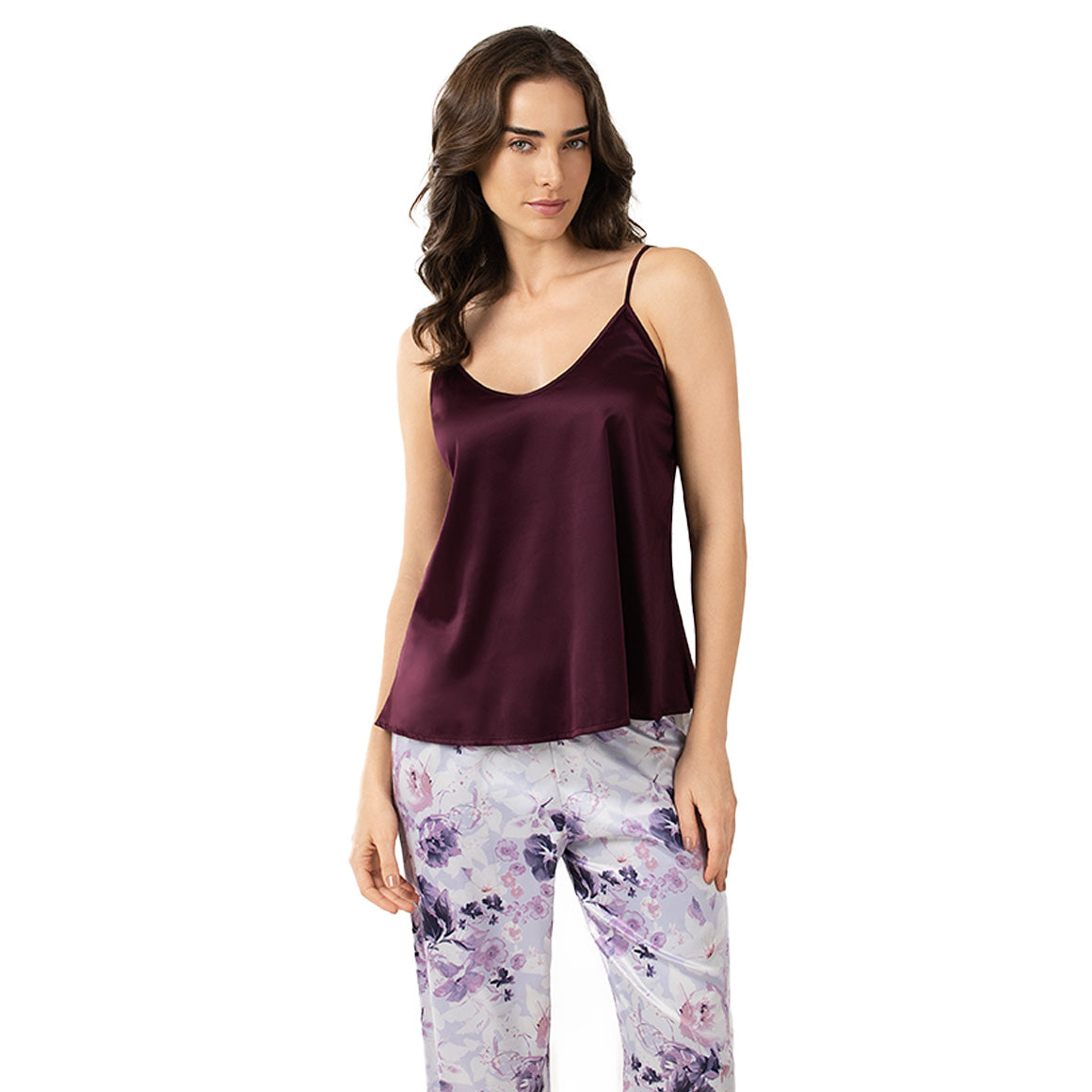 Pijama de dos piezas, elaborado de tela satín. la blusa tipo a cuenta con tirantes ajustables para un calce perfecto. el pantalón largo incluye cintura elástica que se adapta cómodamente al cuerpo, ofreciendo estilo y confort durante toda la noche.