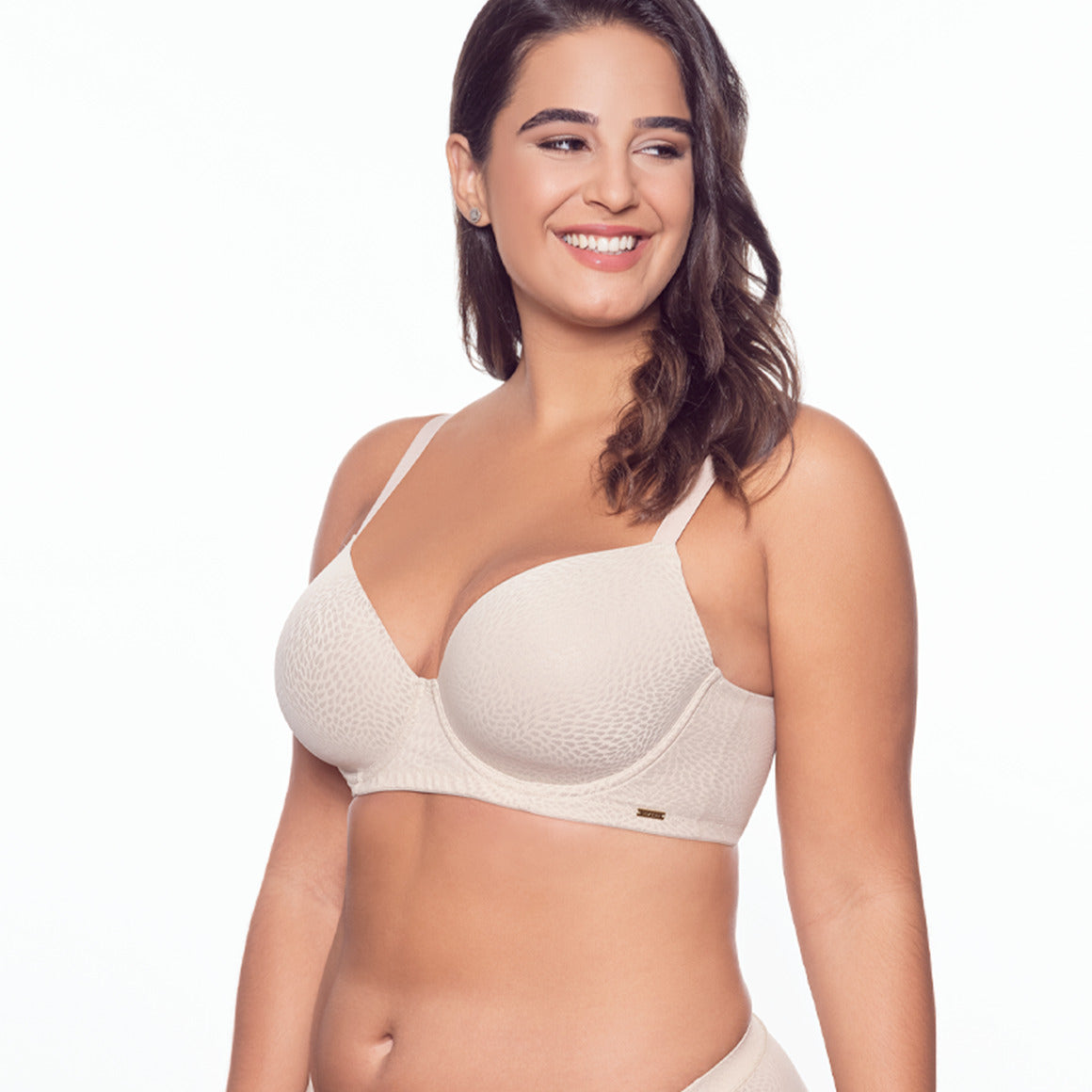 Brasier con aros, copas prehormadas con cobertura completa del busto y sin realce (no push up). banda ancha con elástico en las orillas para un mejor ajuste. broche de tres ganchos y cuatro niveles de ajuste. tirantes regulables. elaborado de microfibra con relieve y forro de tul.