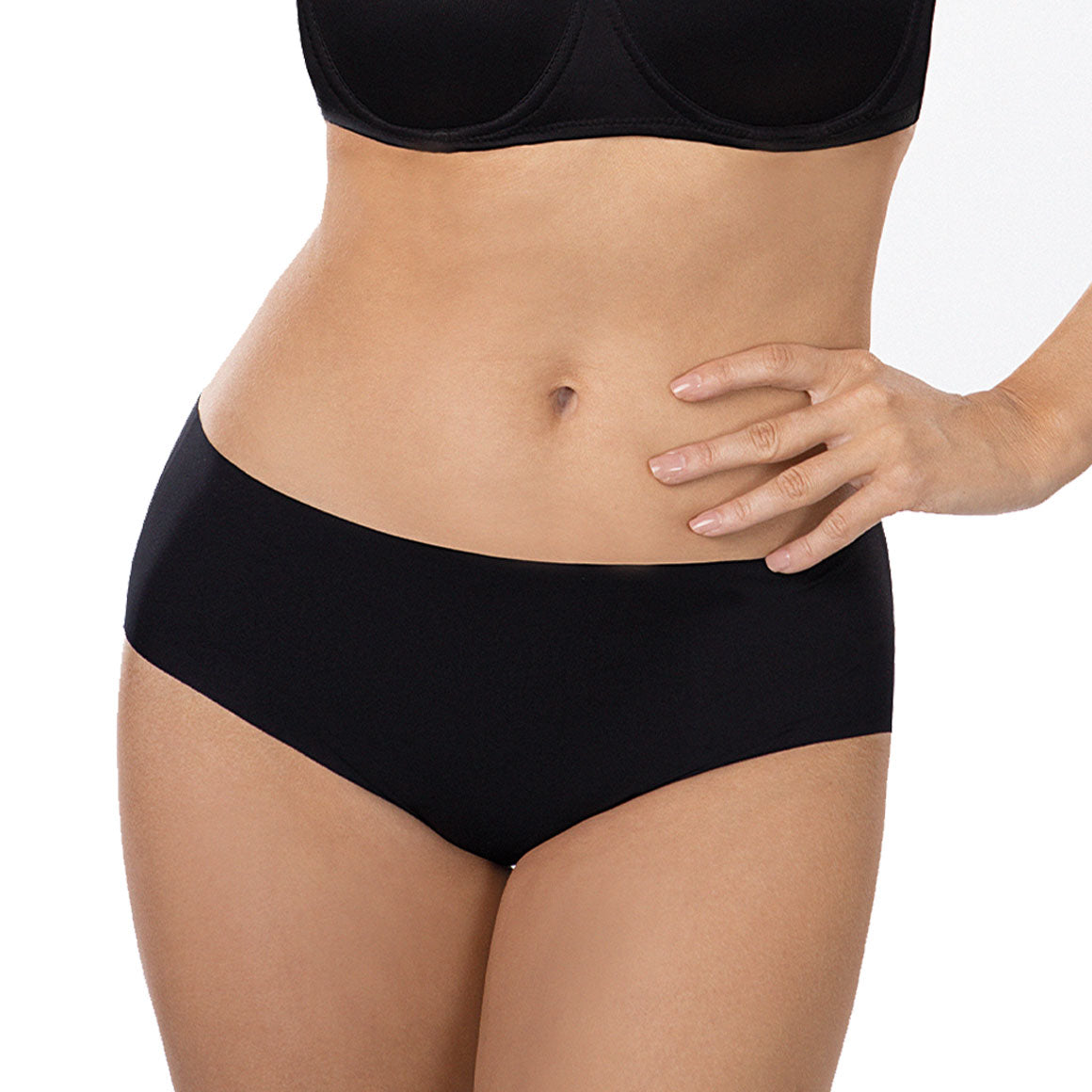 Panty con talle medio y cobertura completa. elaborado de microfibra sin costura en las orillas para un efecto invisible. puente inferior de algodón.