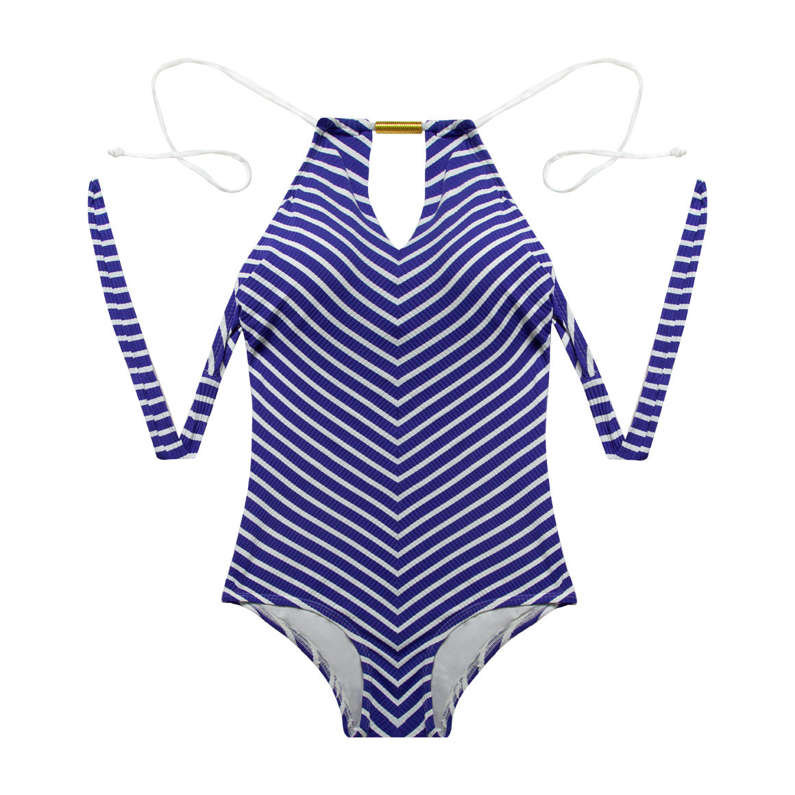 Traje de baño entero tipo�halter, copas prehormadas sin realce y removibles. banda separada en la espalda y cierre de amarre. cobertura media de la parte posterior del panty. elaborado de microfibra con textura, elástico en los contornos para un mejor ajuste y forro de poliéster.