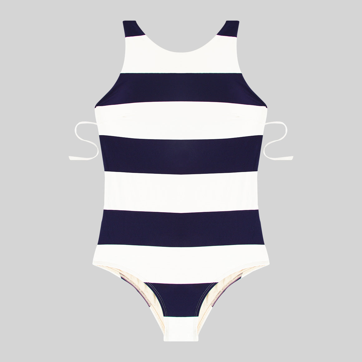 Traje de baño entero con cuello redondo, copas prehormadas sin realce y removibles. tirantes anchos y escote en la espalda en u con cordón de amarre en la parte superior. cobertura media de la parte posterior del panty. elaborado de spandex, elástico en los contornos para un mejor ajuste y forro de poliéster.