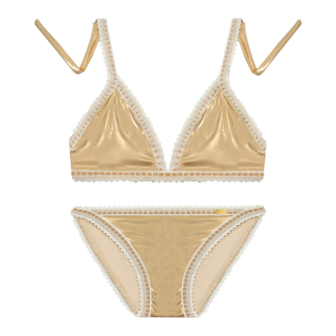 Traje de baño de dos piezas, elaborado de spandex con forro de poliéster, que ofrece suavidad y flexibilidad. su detalle de elástico bordado en crochet en los contornos aporta un toque artesanal y femenino, garantizando confort y sujeción. top con escote profundo en v y copas triangulares resalta la figura de manera natural, mientras que el tirante tipo halter y la banda posterior con amarre añaden un aire moderno y sofisticado. panty de talle medio, con escote de pierna alta y cobertura media, estiliza la silueta y realza las curvas con elegancia. un conjunto elegante y favorecedor que combina diseño artesanal, ajuste perfecto y estilo contemporóneo.