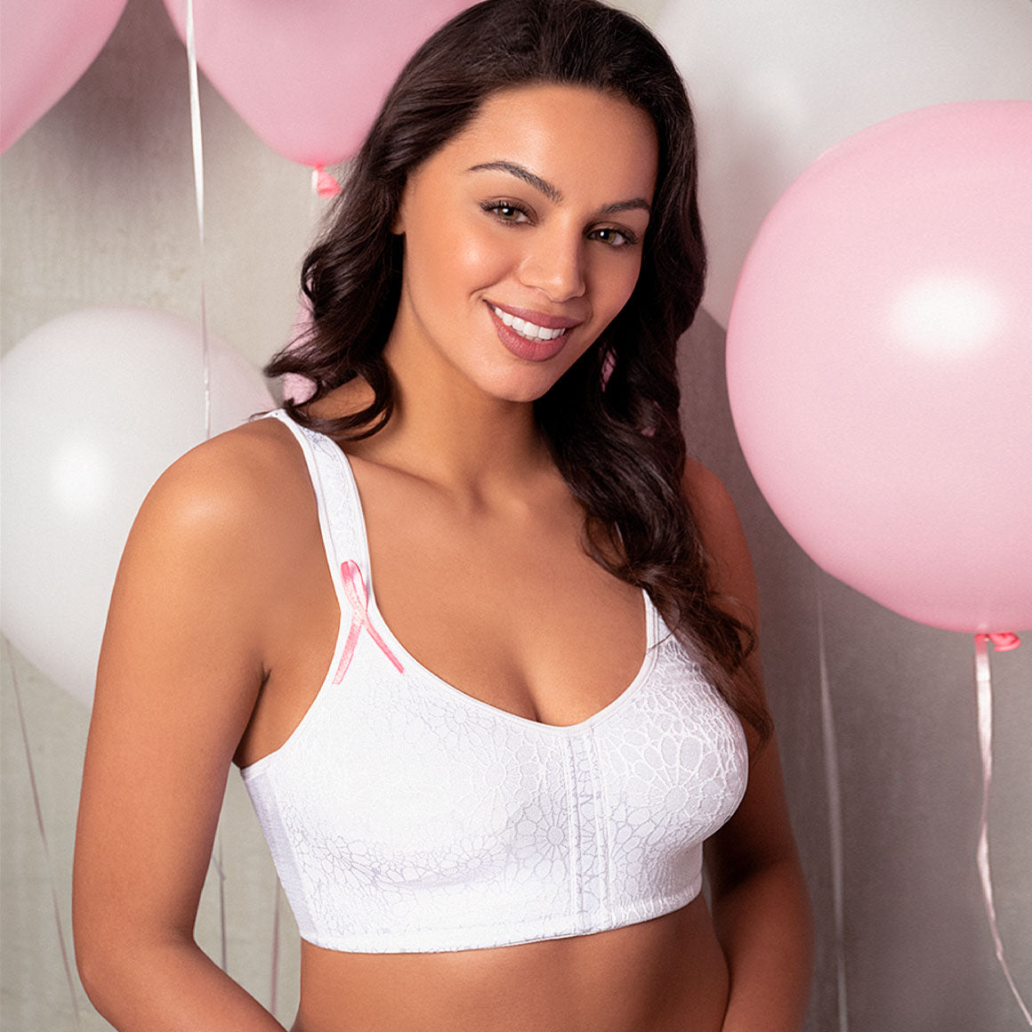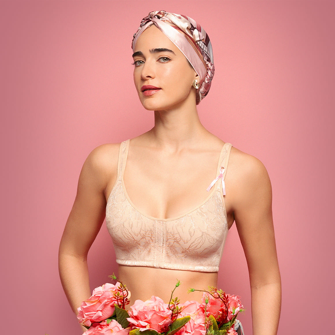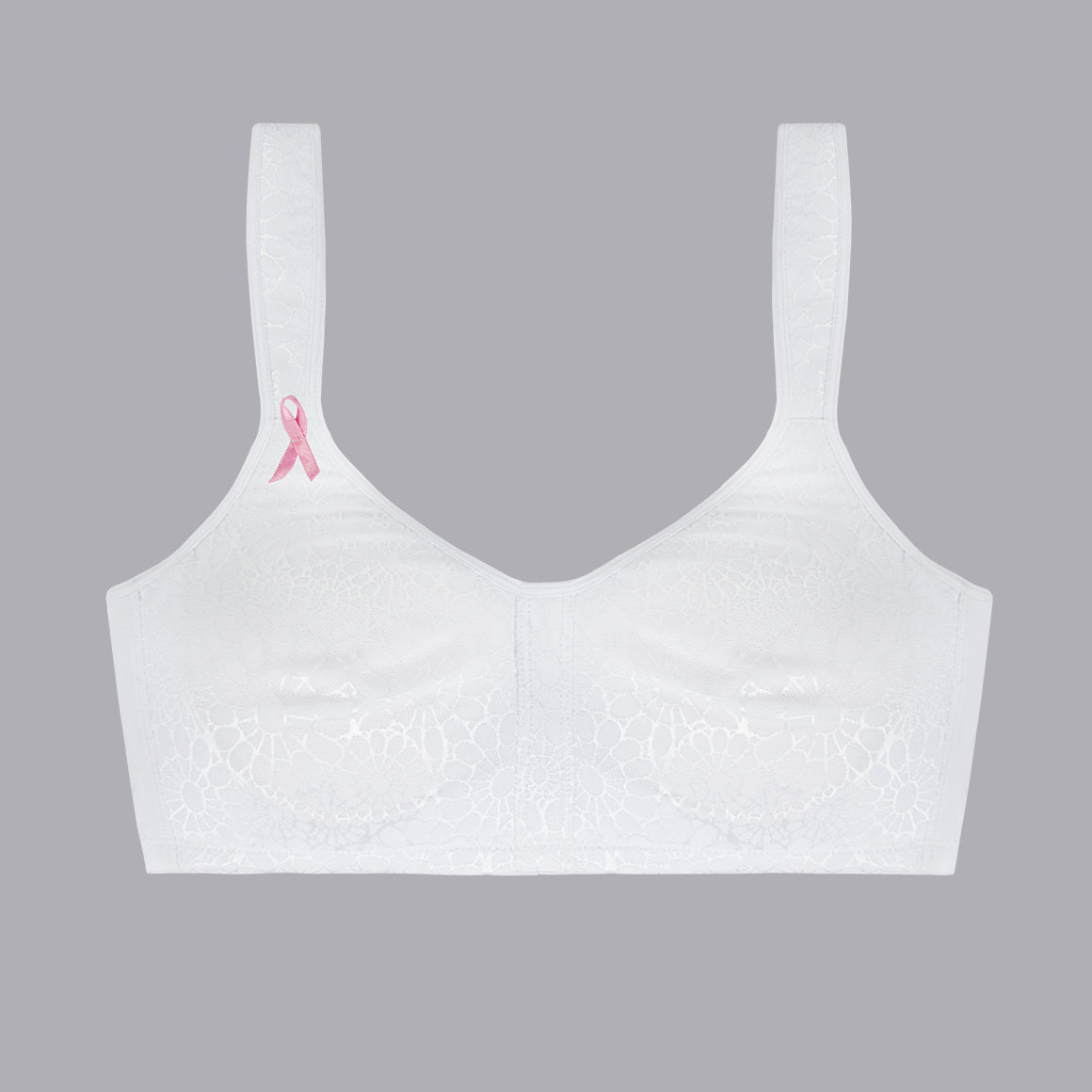 Brasier sin aros, copas de encaje con forro interno de microfibra y contornos inferiores de esponja suave. banda media elaborada de spandex y elastico en las orillas para un mejor ajuste. broche de dos ganchos y cuatro niveles de ajuste. tirantes acolchados y regulables. cuenta con una abertura a los lados de la banda interna para introducir prétesis de post-mastectomña en las copas. *prétesis no incluidas.