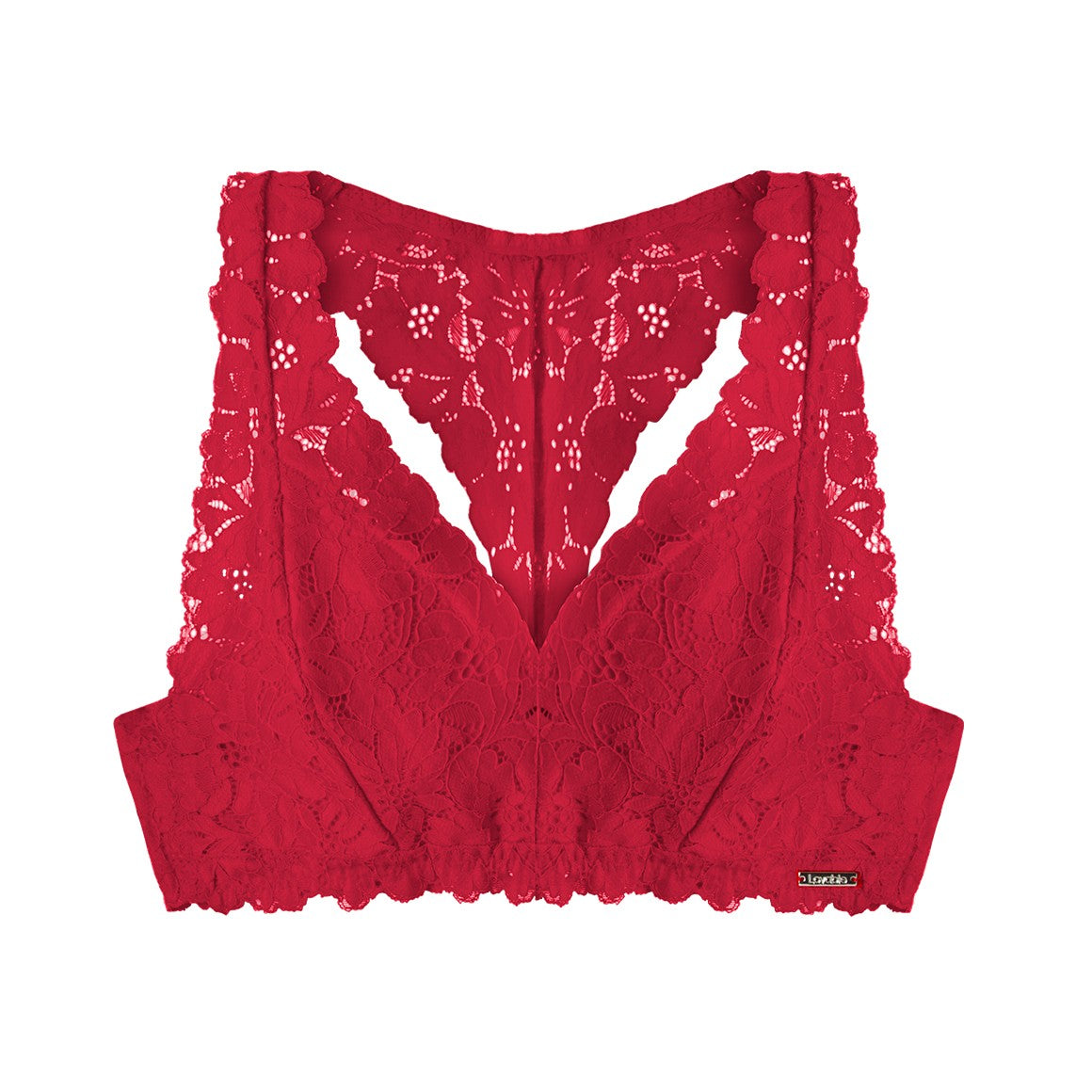 Bralette con escote en v. banda angosta sin broche y con elástico en las orillas para un mejor ajuste. elaborado de encaje y forro de algodón en las copas. con detalle en la parte posterior en forma de triangulo invertido que se une a la banda.