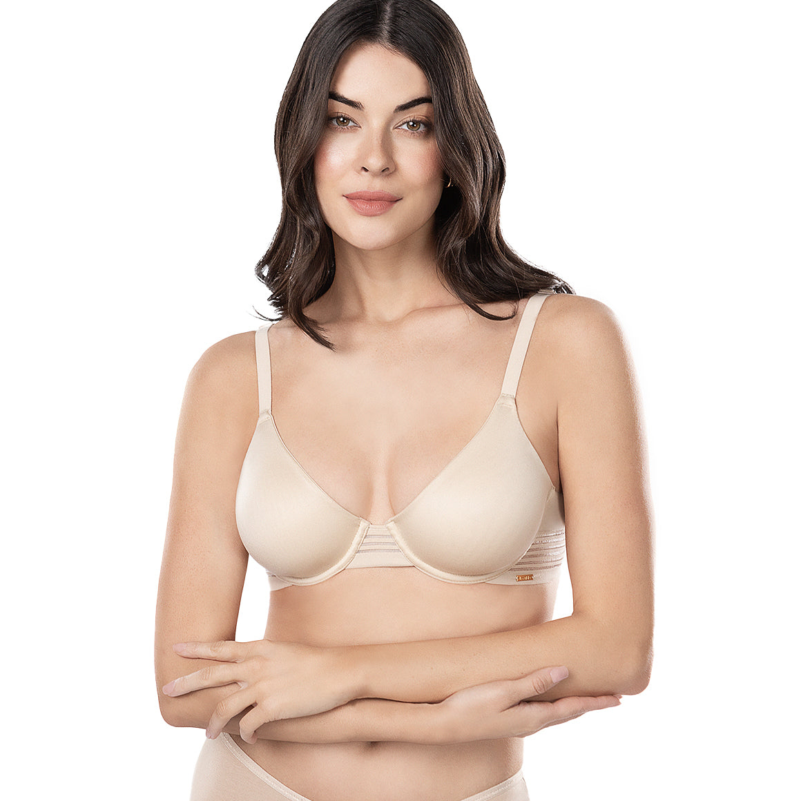 Brasier con aros, copas sin realce y cobertura completa del busto. banda media con elástico escondido y elástico ancho en la base. broche de dos ganchos y tres niveles de ajuste. tirantes regulables y se puede cruzar en x en la espalda. elaborado de microfibra con doble tela en copas y banda.