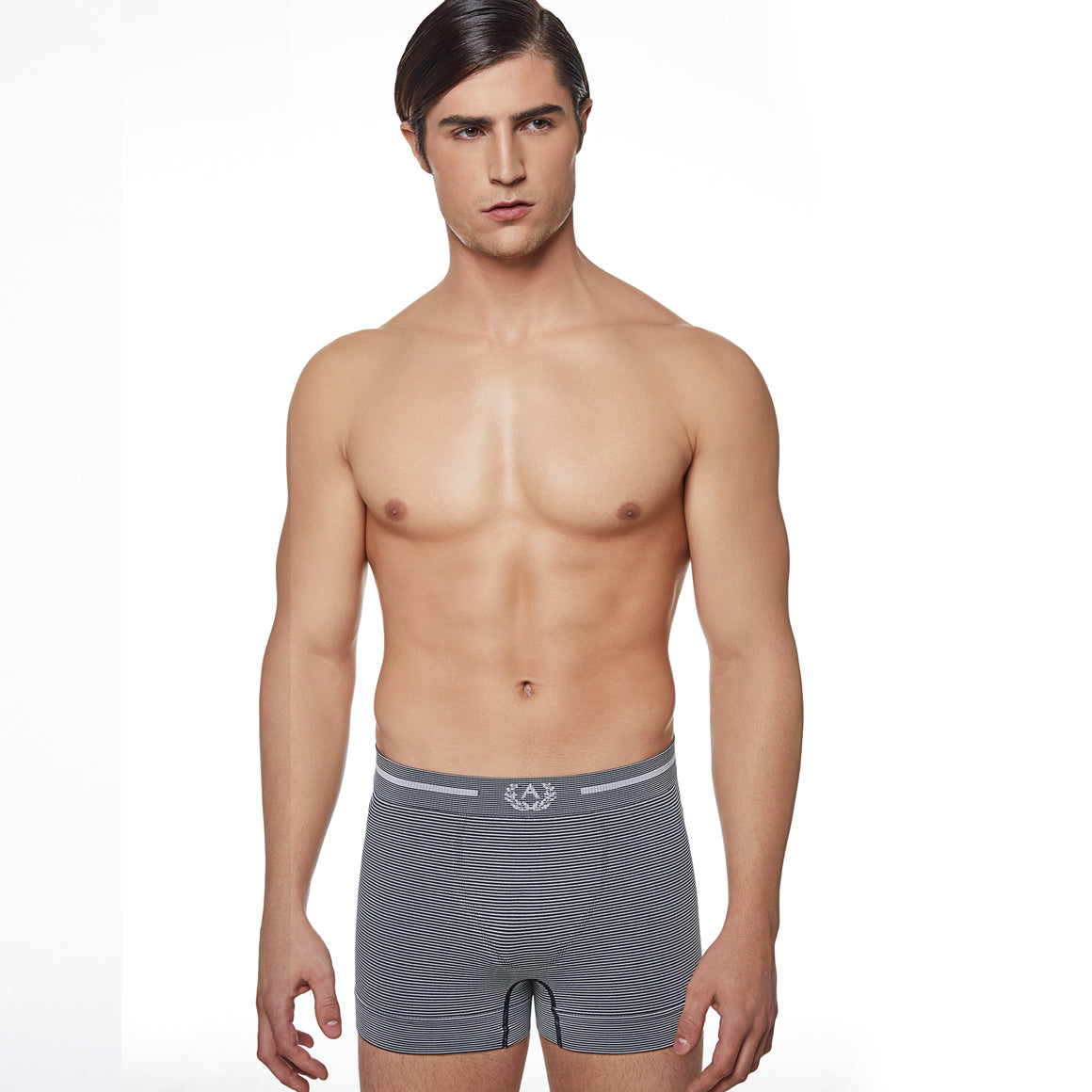Bóxer corto, con talle a la cadera, ajustado y sin costuras laterales. elaborado de microfibra rayada para mayor flexibilidad.