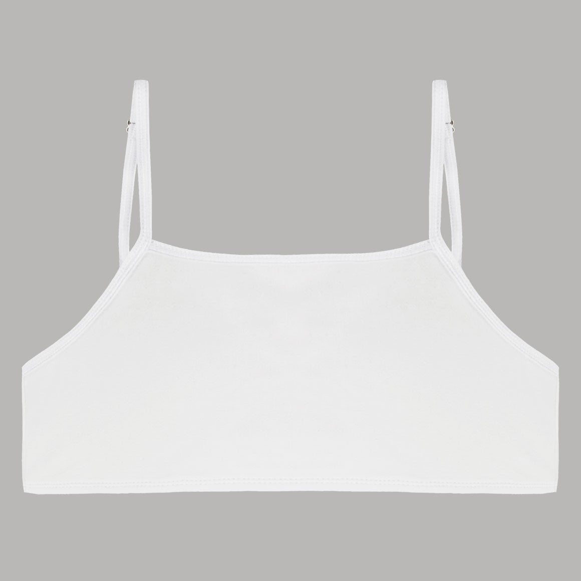Formador para niña con escote medio. de banda media, con elástico escondido. sin broche y con tirantes regulables. elaborado de algodón elastano.