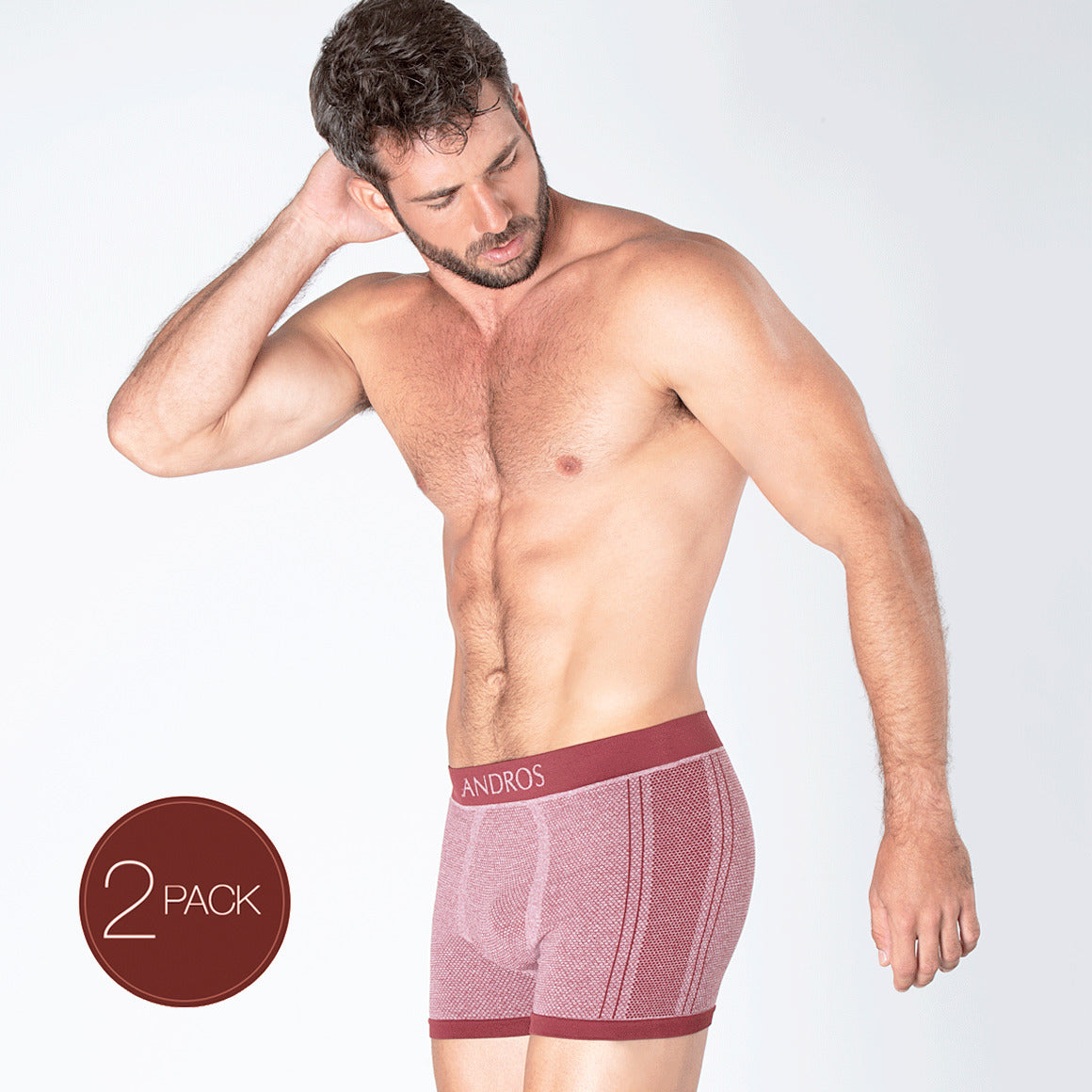 Bóxer corto, con talle a la cadera, ajustado y sin costuras laterales. elaborado de microfibra con textura para mayor flexibilidad. *empaque de 2 bóxeres de diferentes colores.
