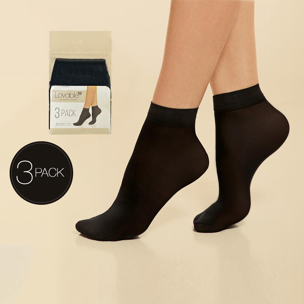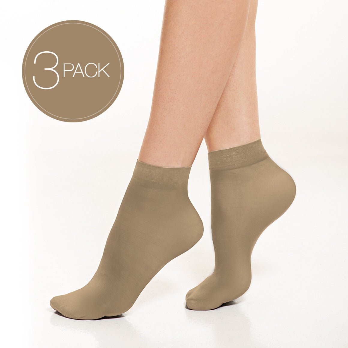 Medias cortas. cubren desde la punta del pie hasta arriba del tobillo. elaborado de nailon y elastano. *presentacion en empaque de 3 pares.