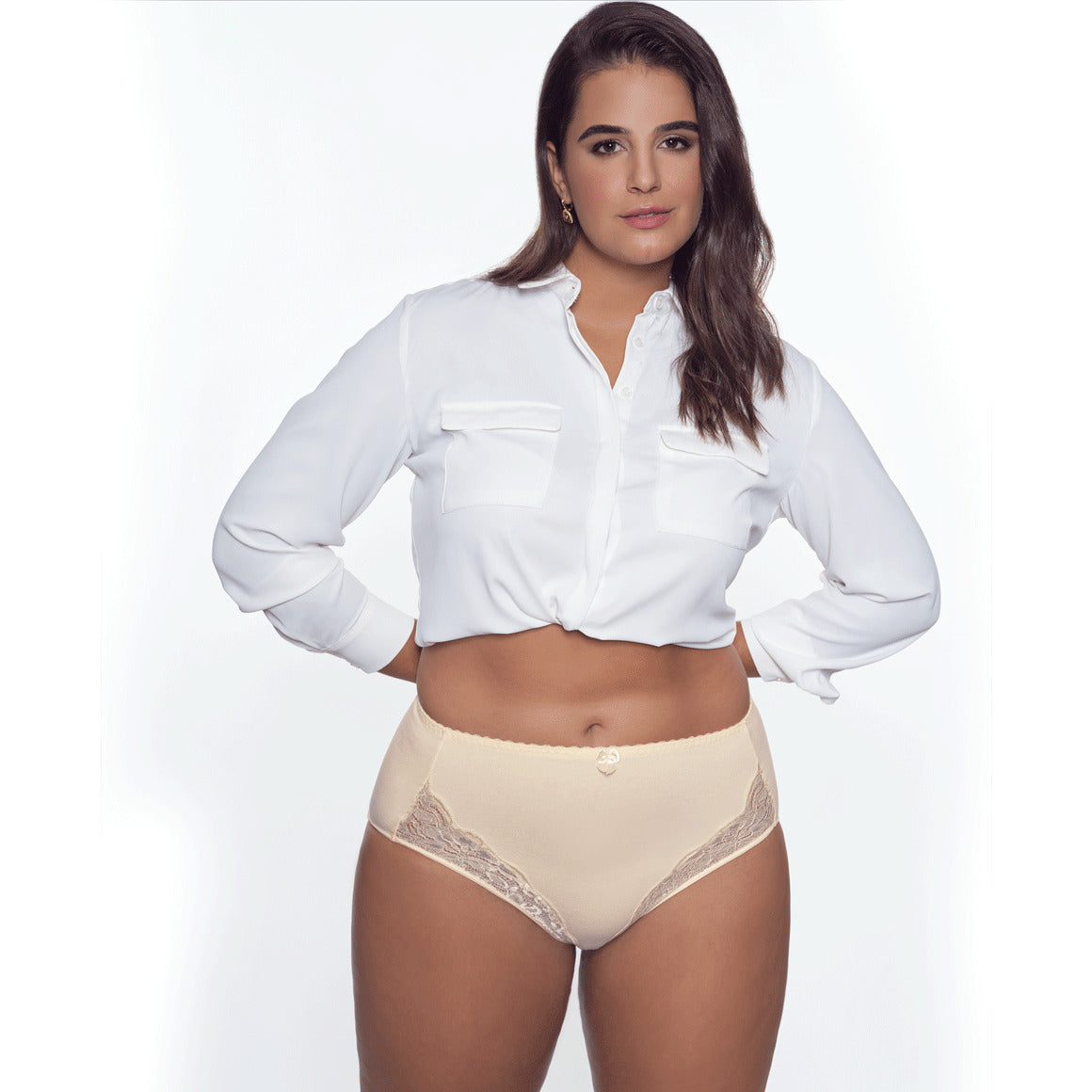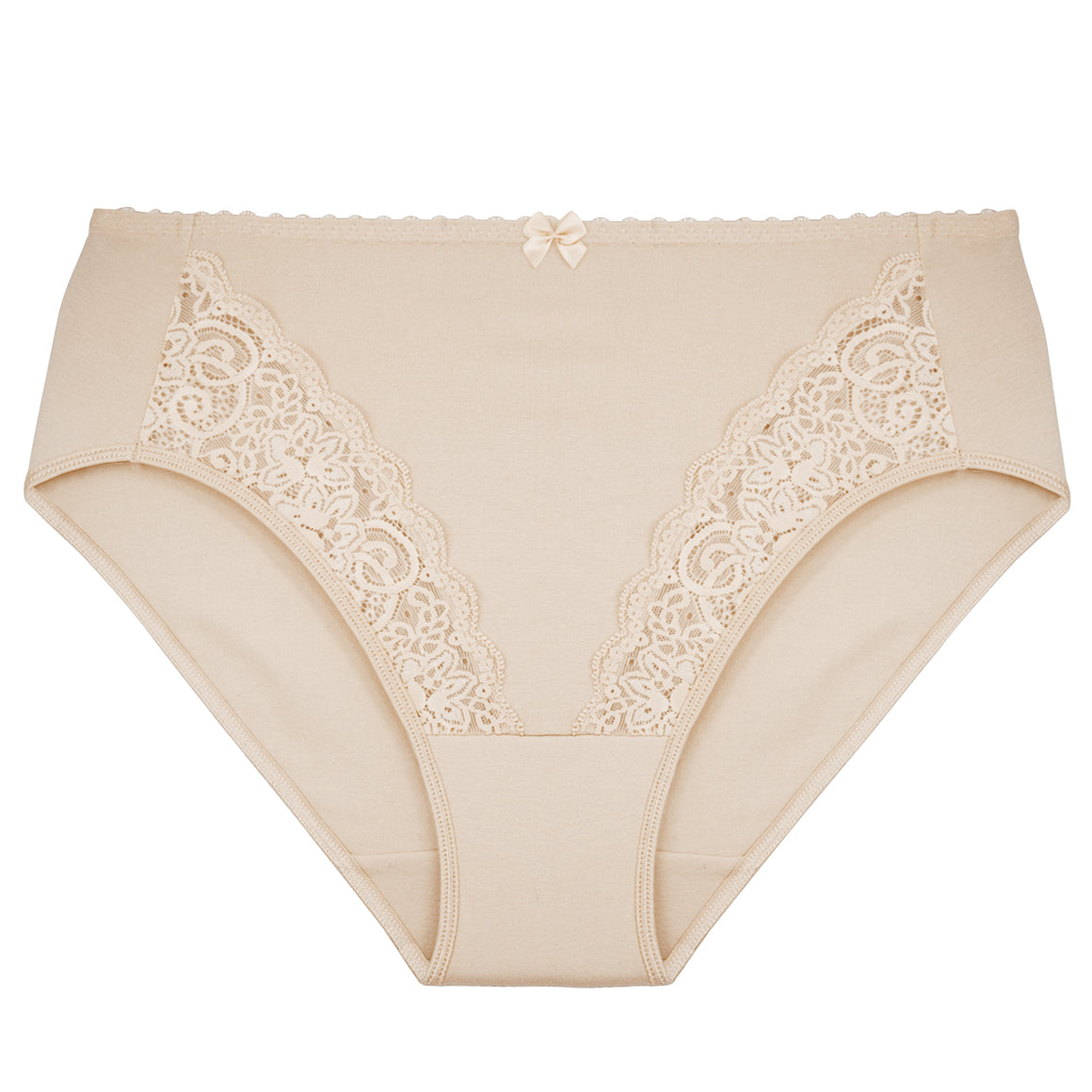Panty con talle alto y cobertura completa. elaborado de algodón elastano y encaje en los laterales de la parte frontal, elástico suave en pierna y cintura. puente inferior de algodón para mayor frescura.