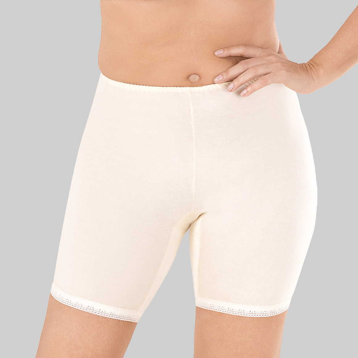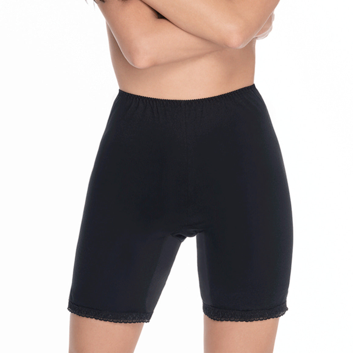 Saya pantalón con talle alto. elaborado de algodón, con refuerzo de doble tele en la entrepierna, elástico en pierna y cintura para un mejor ajuste, con detalles de encaje en el ruedo.