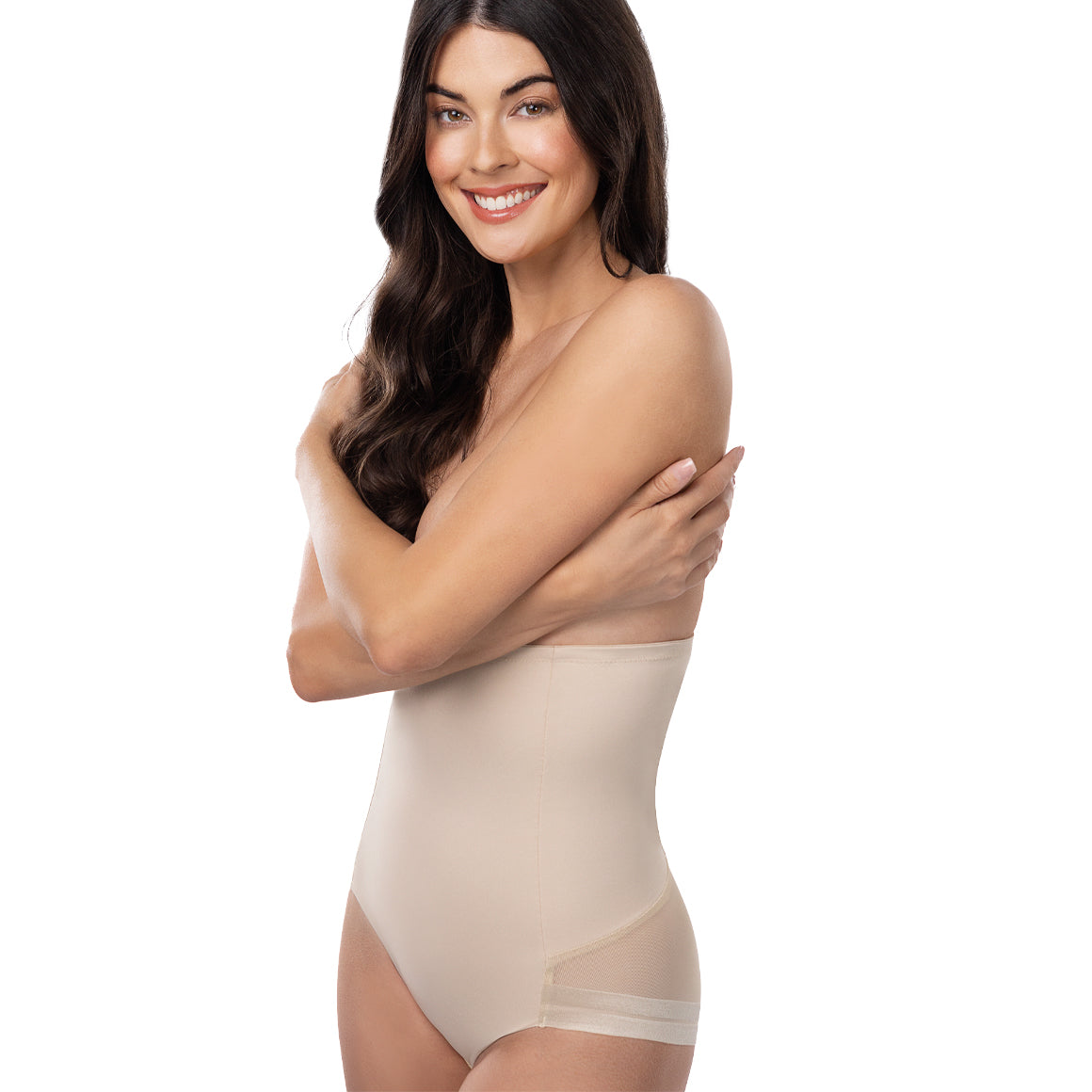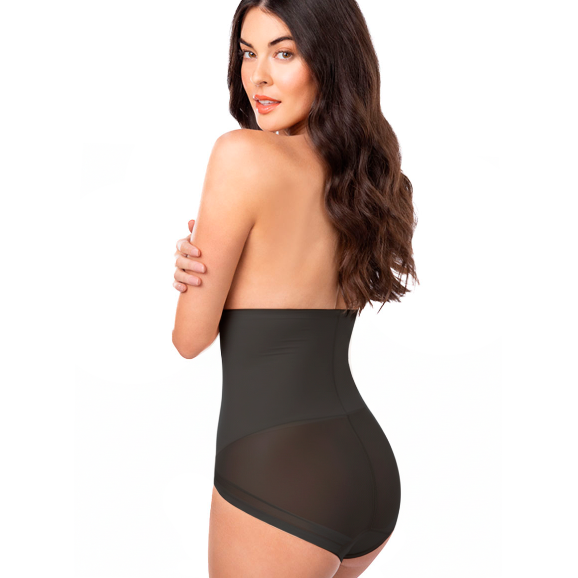 Faja de control fuerte del abdomen, talle hasta abajo del busto y cobertura completa. broche inferior de tres ganchos y cuatro niveles de ajuste. elaborado de microfibra con refuerzo de powernet y tul en laparte posterior del panty, sin costuras en los bordes para un efecto invisible bajo la ropa y levemente fruncido en el centro para realzar la figura. puente inferior de algodón para mayor frescura.