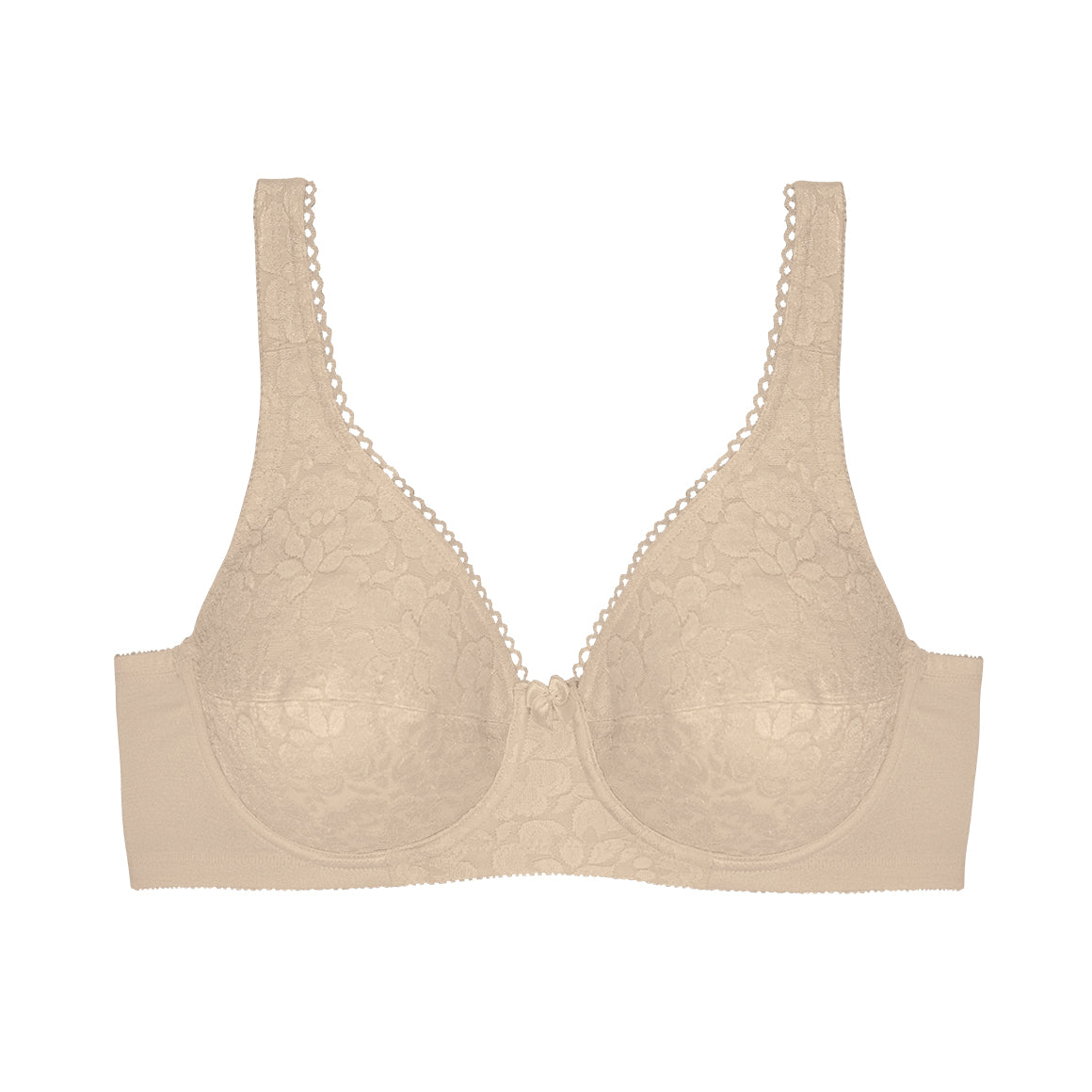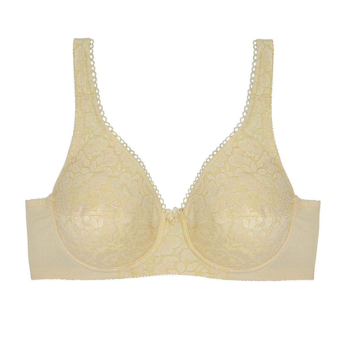 Brasier sin aros, copas de encaje sin realce con forro de algodón y refuerzo de espuma en el contorno interno. banda media con elastico para un mejor ajuste, broche de dos ganchos y tres niveles de ajuste, con tirantes regulables. elaborado de spandex en la banda y detalles de encaje en el escote copas.