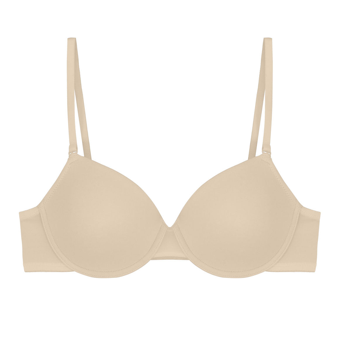 Brasier con aros, copas prehormadas sin realce. banda angosta, broche de dos ganchos y tres niveles de ajuste, tirantes removibles y regulables. elaborado de microfibra.