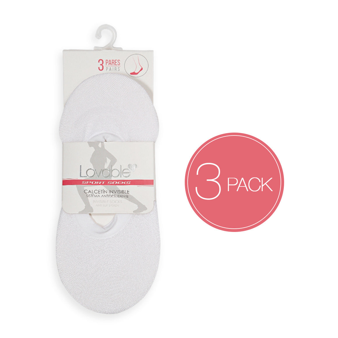 Calcetín invisible femenino, totalmente ajustable. elaborado con poliéster y spandex. en la parte del talón, cuenta con un silicón antideslizante para mantenerlo en su lugar. absorbe la transpiración, manteniendo el pie seco y cómodo. *empaque de tres pares.