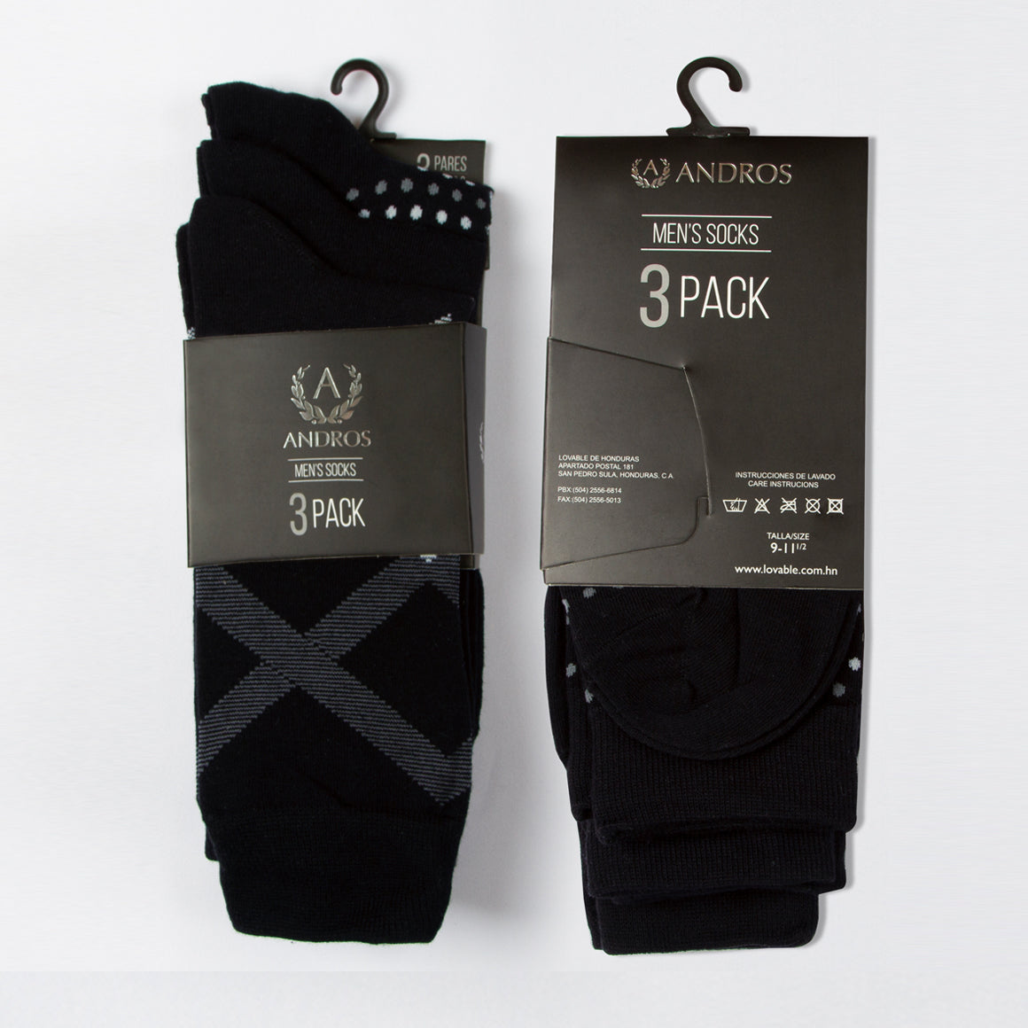 Calcetín con cobertura hasta media pantorrilla. elaborado con algodón, poliéster y elastano. absorbe la transpiración, manteniendo el pie seco y cómodo. *empaque de tres pares con diferentes diseños.