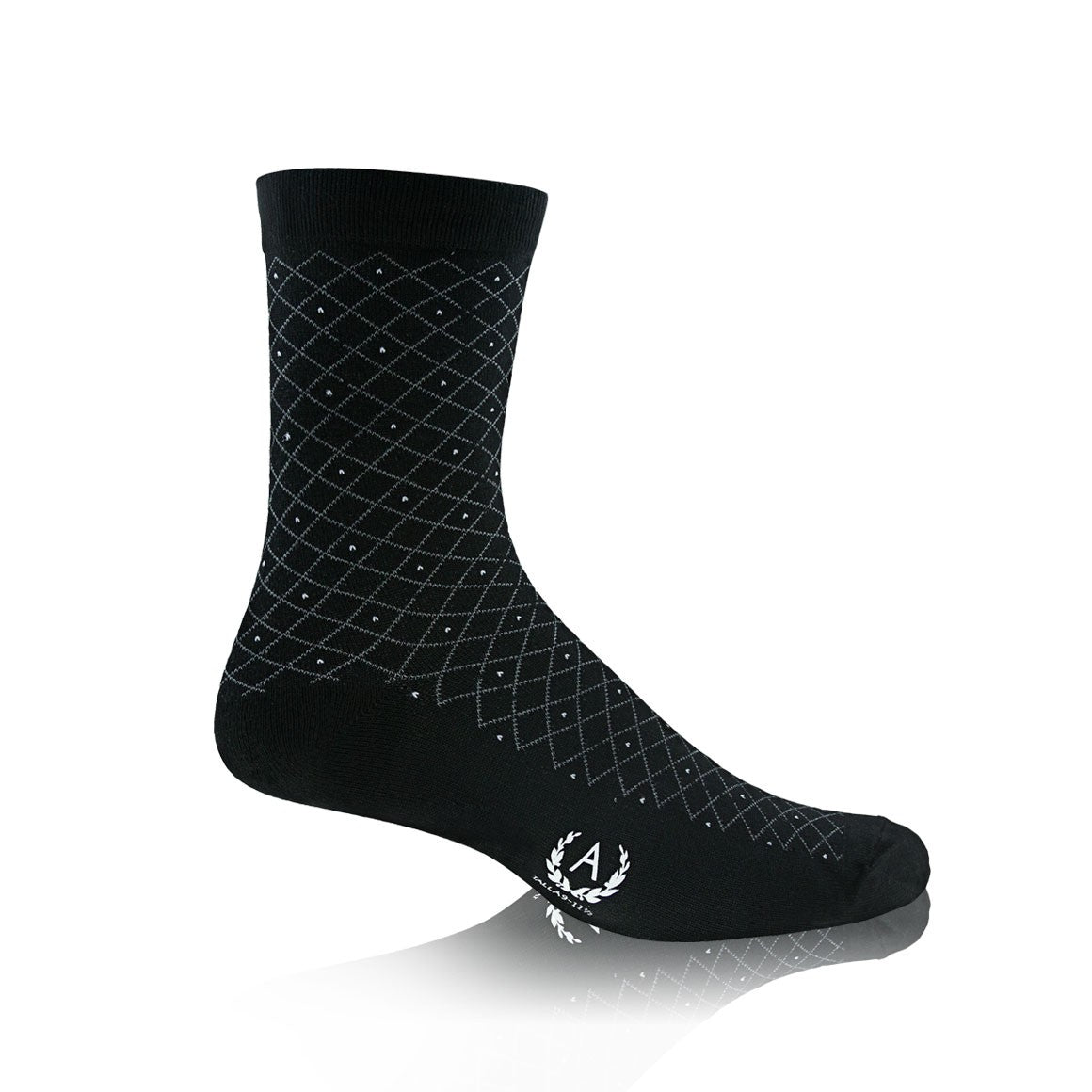Calcetín con cobertura hasta media pantorrilla y diseños de figuras geométricas. elaborado con fibra de bambú, poliéster y elastano. absorbe la transpiración, manteniendo el pie seco y cómodo.