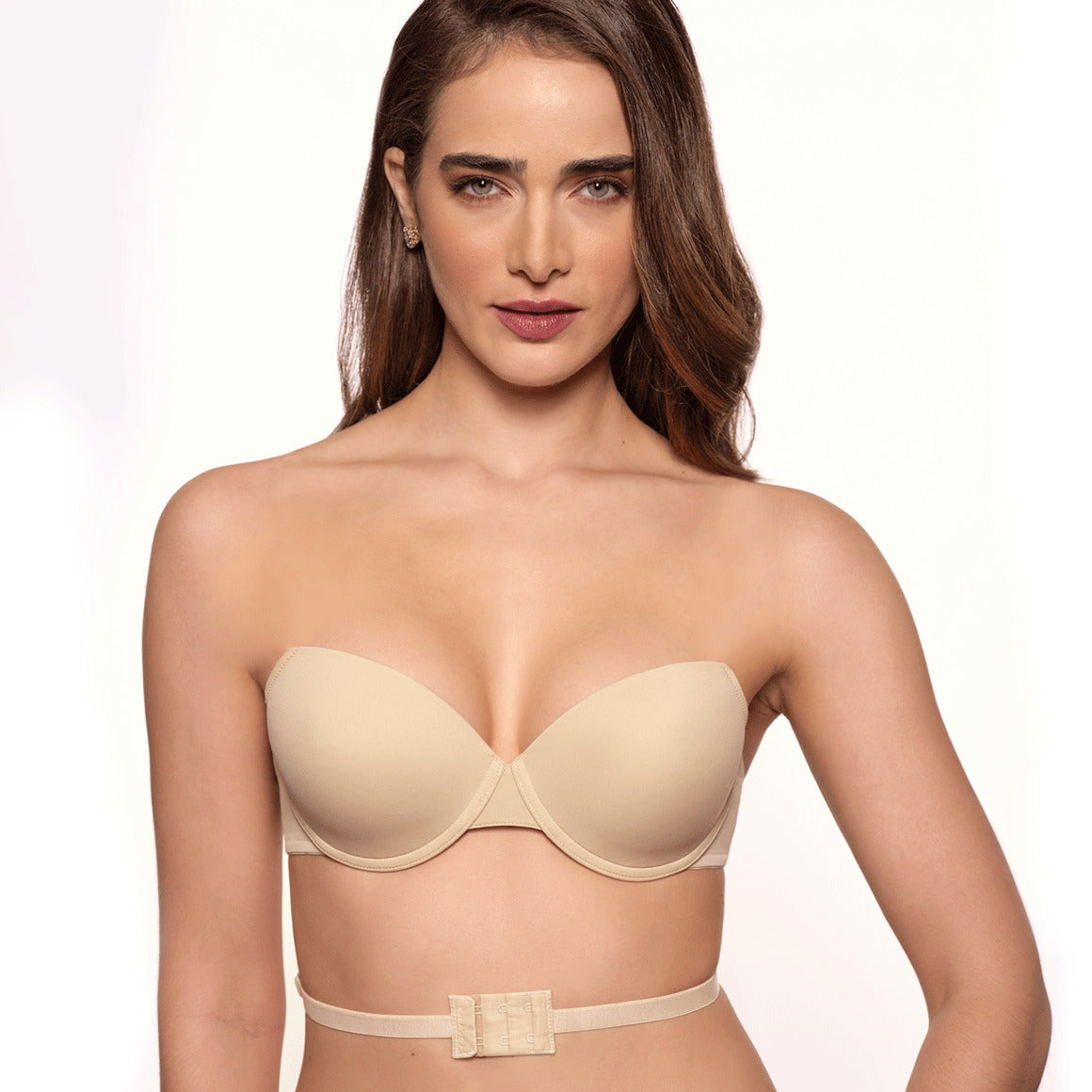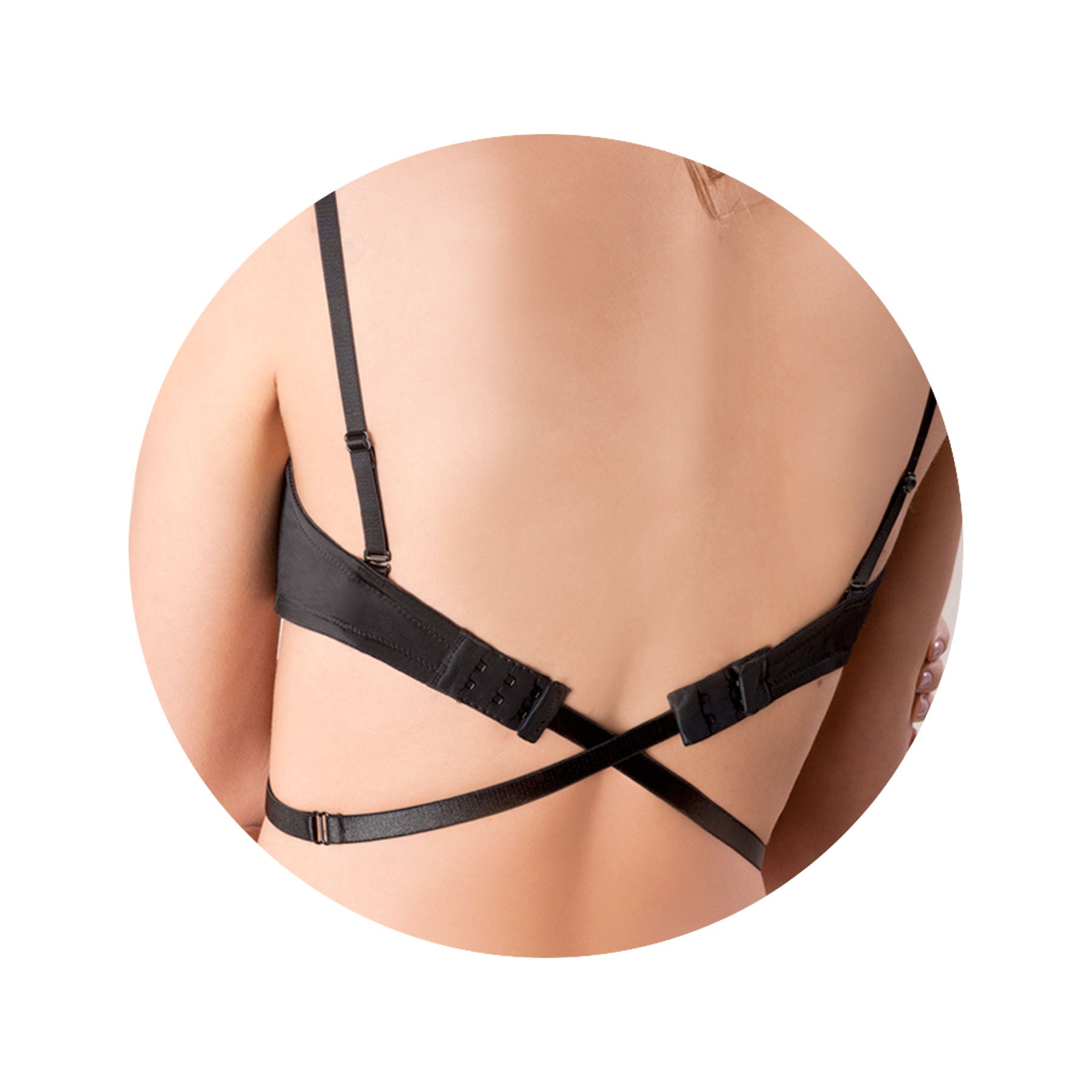 Extensor de banda regulable. cuenta con dos broches de dos ganchos y tres niveles de ajuste, uno para unir el extensor al brasier y otro en la parte frontal como cierre. ideal para escotes pronunciados en la espalda.